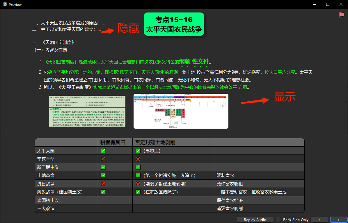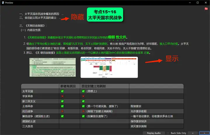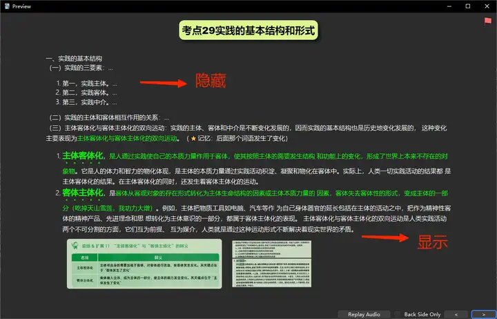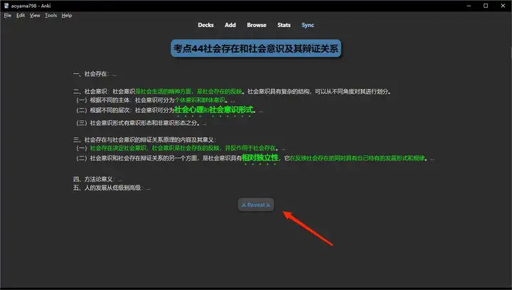 - cloze-overlapping模板使知识点一条一条显示,其余隐藏,专注背诵记忆单一知识点。笔记末尾有“reveal”按钮,点击立即显示所有知识点。